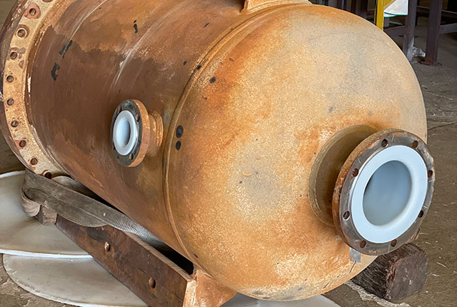 Bondaliner™ is applied via a rotational lining process. The granulated powder resin fed inside the fitting or vessel which rotates in an oven on two perpendicular axes, giving the resin time to melt and spread uniformly over all interior surfaces of the equipment. This unique Bondaliner™ process provides a seamless, permanently bonded liner.